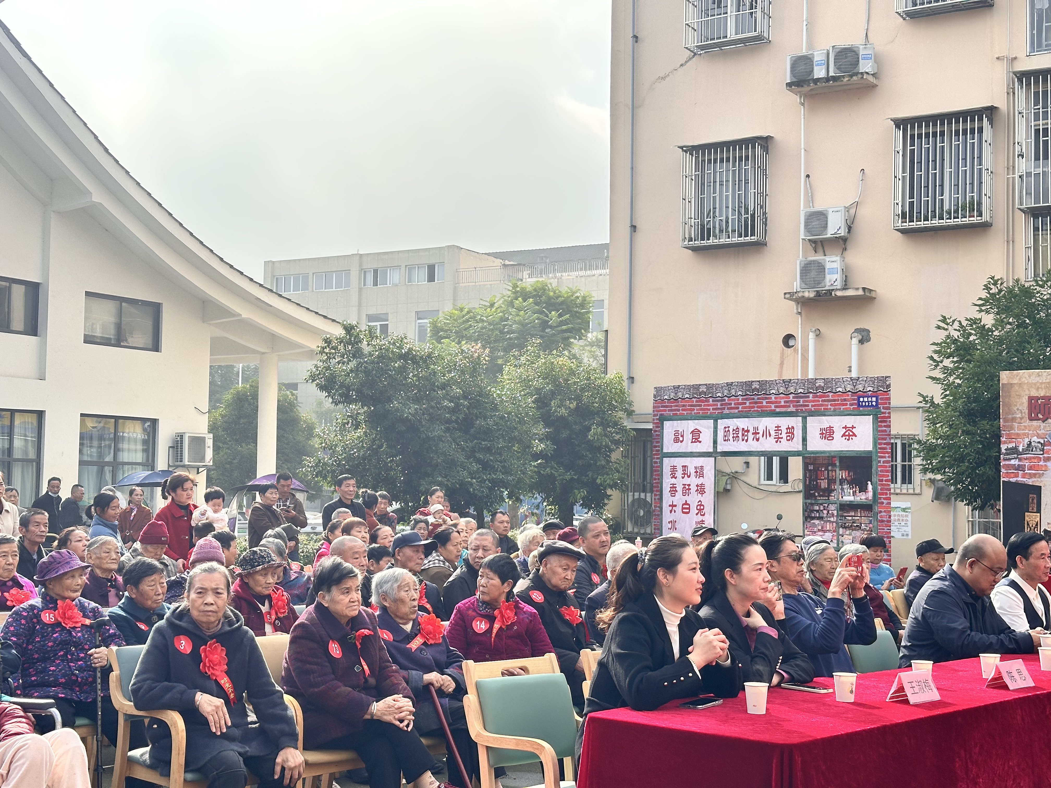 活动伊始,院区便洋溢着节日喜悦。长者们佩戴大红花,品尝重阳糕与热茶,与老友畅谈合影,脸上洋溢着幸福笑容。
