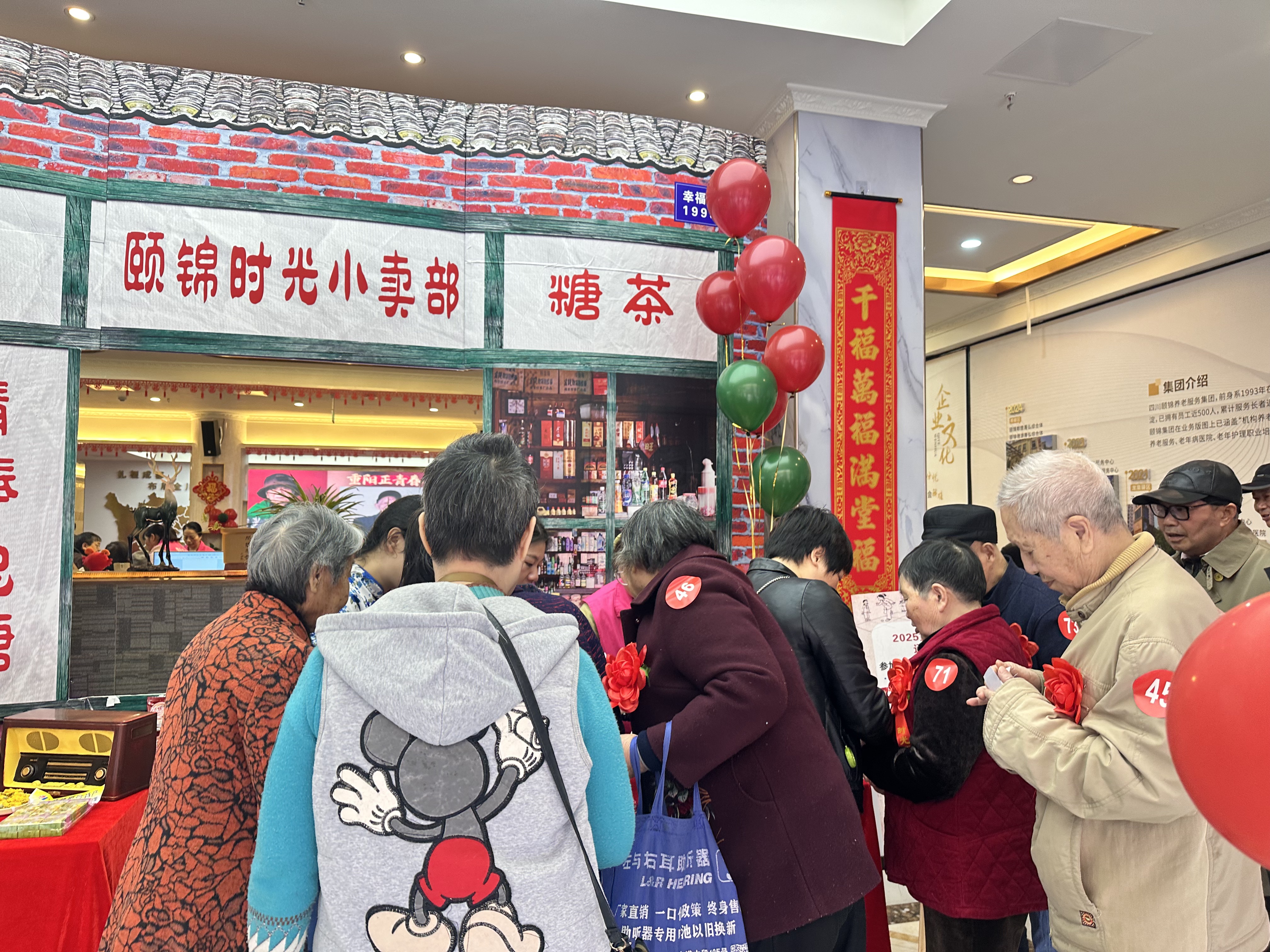 “时光记忆小卖部”里,大大泡泡糖、老式搪瓷杯、电视机等老物件整齐陈列。长辈们围在货架前,拿起零食轻轻端详,“这个我小时候也吃过!”“好久没见到这种糖了!”你一言我一语,回忆如潮水般涌来。