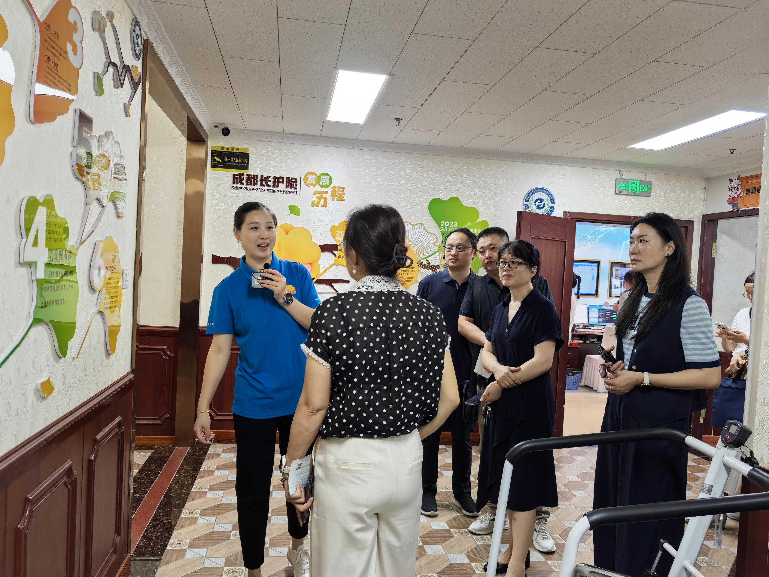 2025年9月17日,湖南省长沙县人民政府副县长陈洁、长沙市医疗保障局副局长谭志国一行莅临四川颐锦养老服务集团旗下虹满天康养中心,实地调研长期护理保险工作开展情况。郫都区医疗保障局领导陪同调研。虹满天康养中心长护险相关工作人员全程接待并同步讲解。