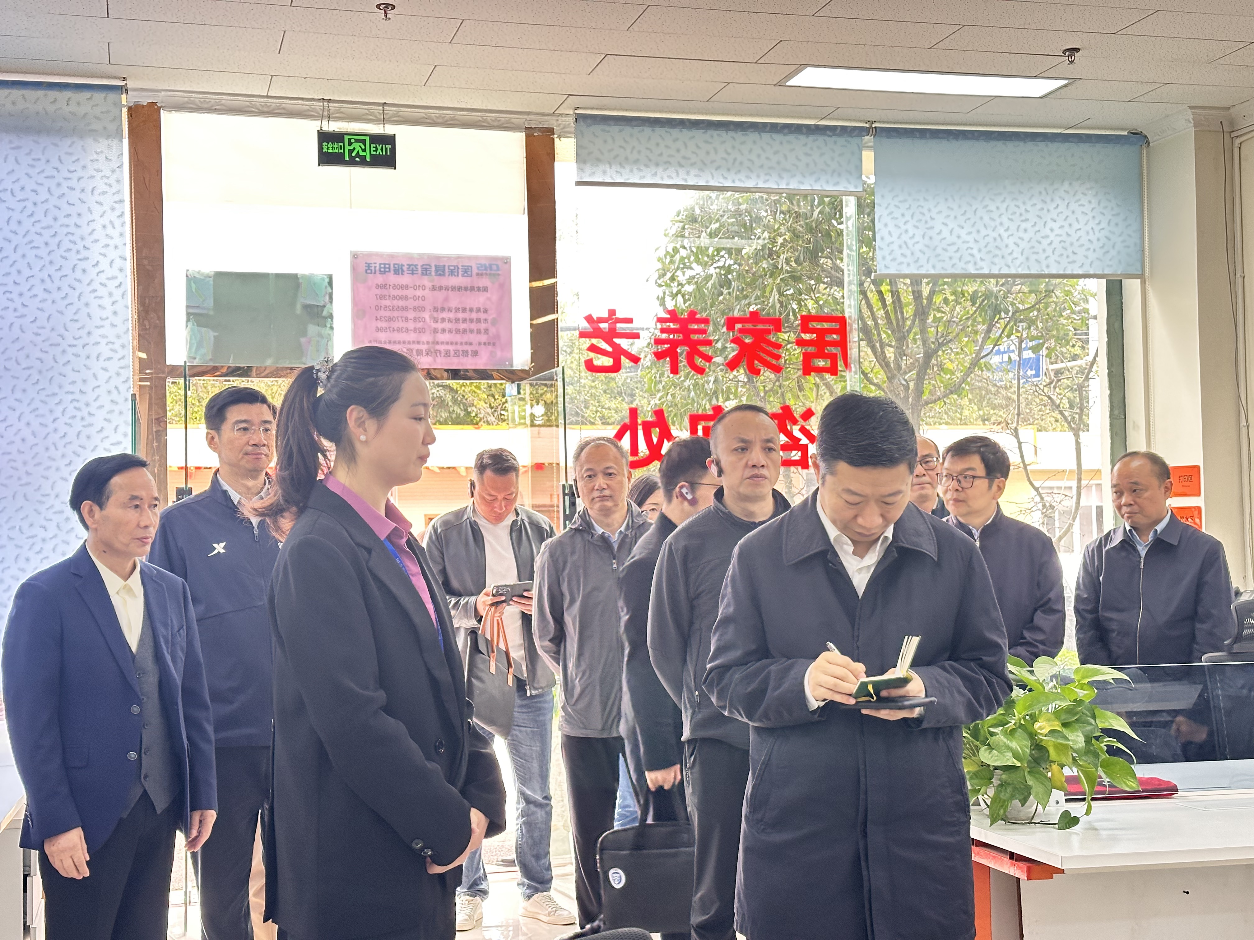 在居家服务办公室,调研组详细了解上门服务团队的建设情况,仔细询问护理人员的资质、培训及服务流程,重点关注质量管控机制。
