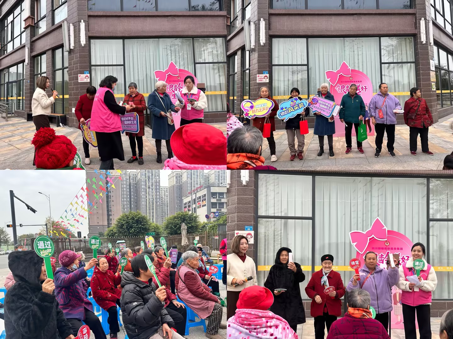 台下观众沉浸其中,不时轻声跟唱。每当计分牌举起,掌声与欢呼便将现场气氛推向高潮。比赛尾声,每位登台的长辈都收获了荣誉证书和实用礼品,无论得分高低,每个人都满载而归。